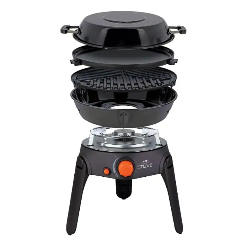 For ease of use, the station includes a push-button piezo ignition, meaning no matches are required. Meanwhile, the foldable legs provide a stable cooking platform while remaining compact for storage. Once packed away, the entire system fits neatly into the included storage bag, making transport simple and convenient.