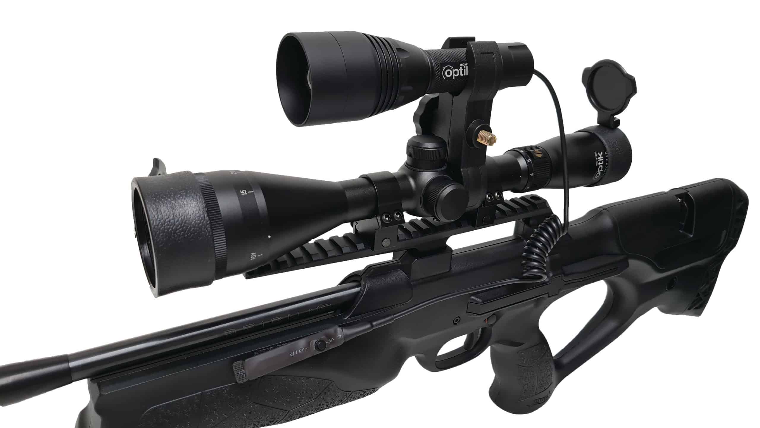 Richter Optik Gunlight & Illuminator Kit. The ultimate kit for shooting at night, and it won’t break the bank! Suitable for air rifles and powder burners, ideal for close range, pest control such as rats and powerful enough for long range fox control too. Using night vision and need a boost? No problem! The Richter Gunlight Kit includes Infra Red module to give more illumination and better vision through your night vision set-up. The powerful 250 lumen focusable beam, using CREE XPC2 LED chip, can be used at distances up to 300 yards. Made from aircraft-grade aluminium, the unit has IP67 waterproof protection. Using 2500 mAh batteries, you can expect a run time of 3-4 hours.